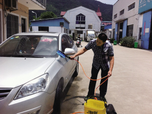 “一般洗車,不但要趕到洗車店這么麻煩,而且一趟洗車下來,水資源耗費很厲害。”任正志的這款車載洗車器,不但讓洗車能輕松在家里完成,而且與傳統洗車相比,節約水量近90%。